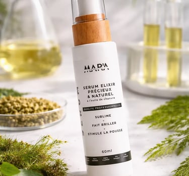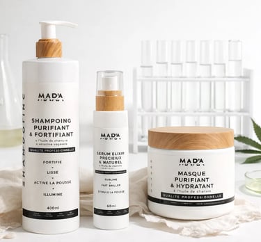 Chez MAR'A COSMETICS, nous croyons que la beauté des cheveux passe par l'alliance parfaite entre actifs végétaux puissants et expertise cosmétique.